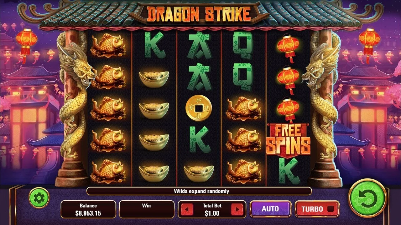 This 40-line, 5x5 video slot has three different types of expanding wilds which become sticky during free spins. Feel the power of Dragon Strike with potentially huge wins in both the base game and free spins.